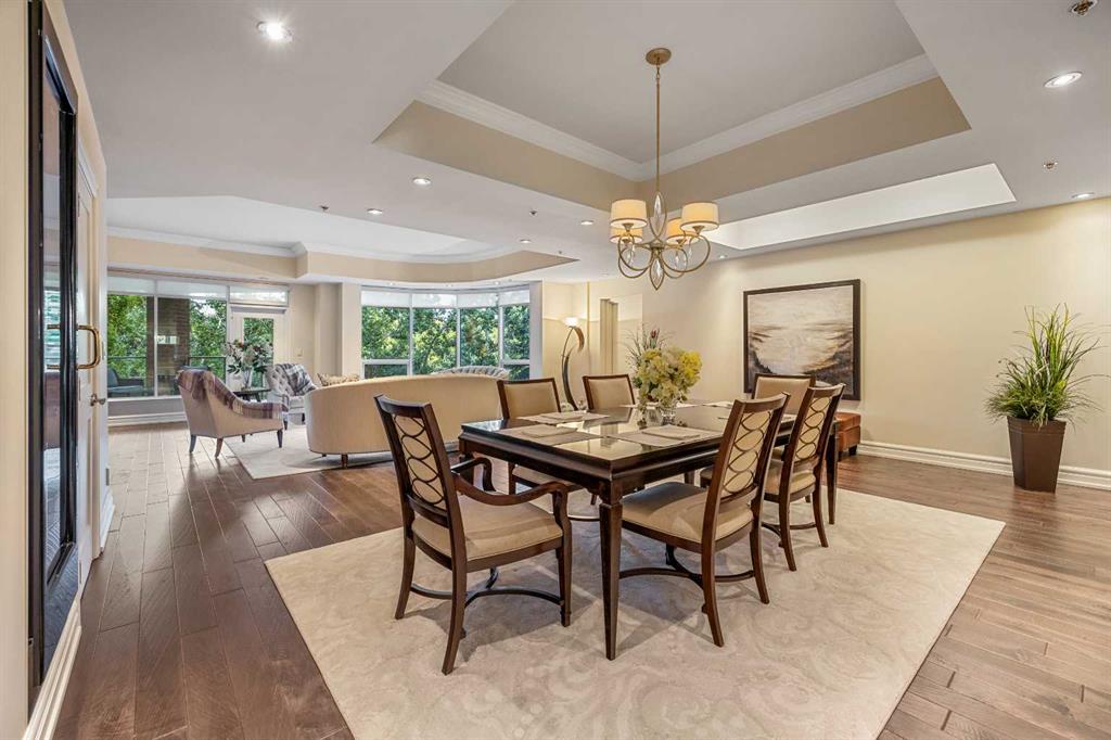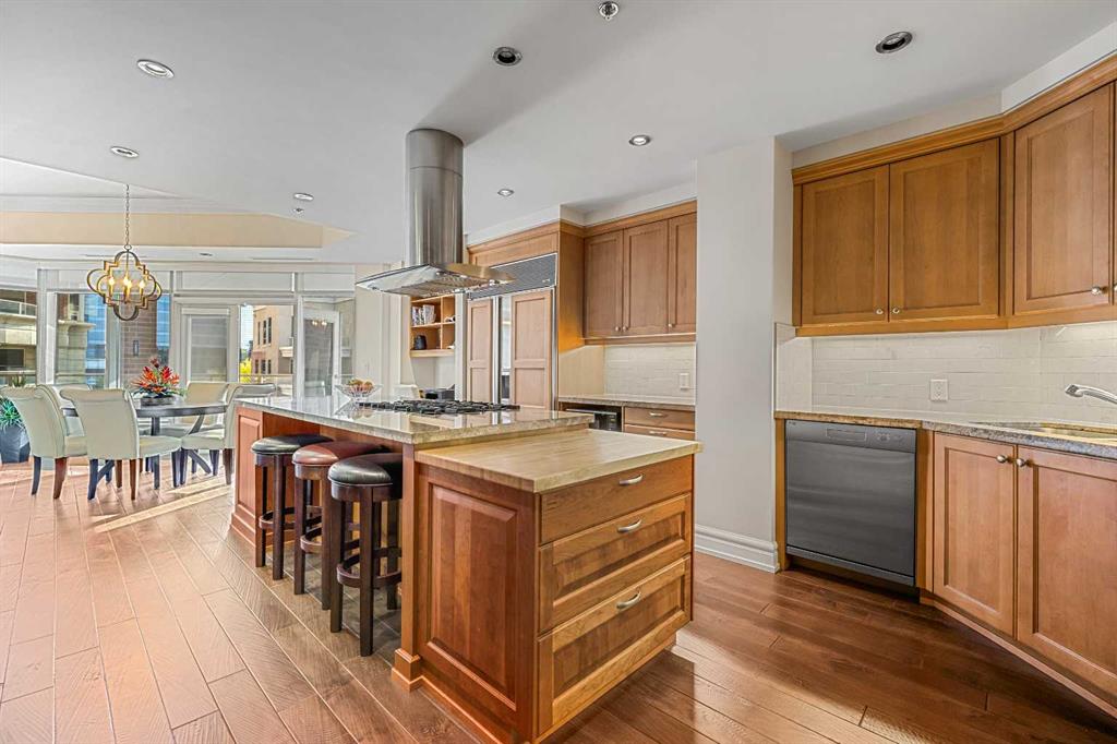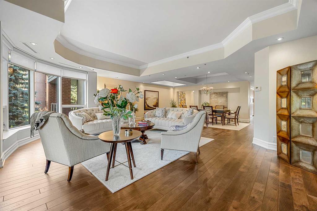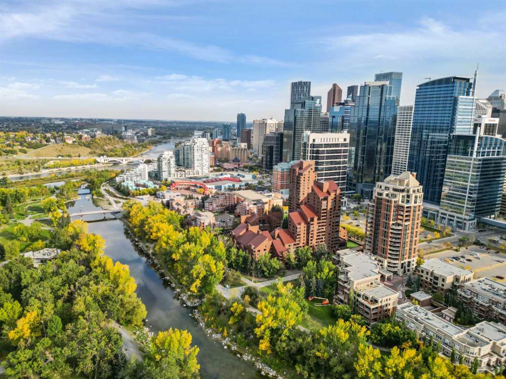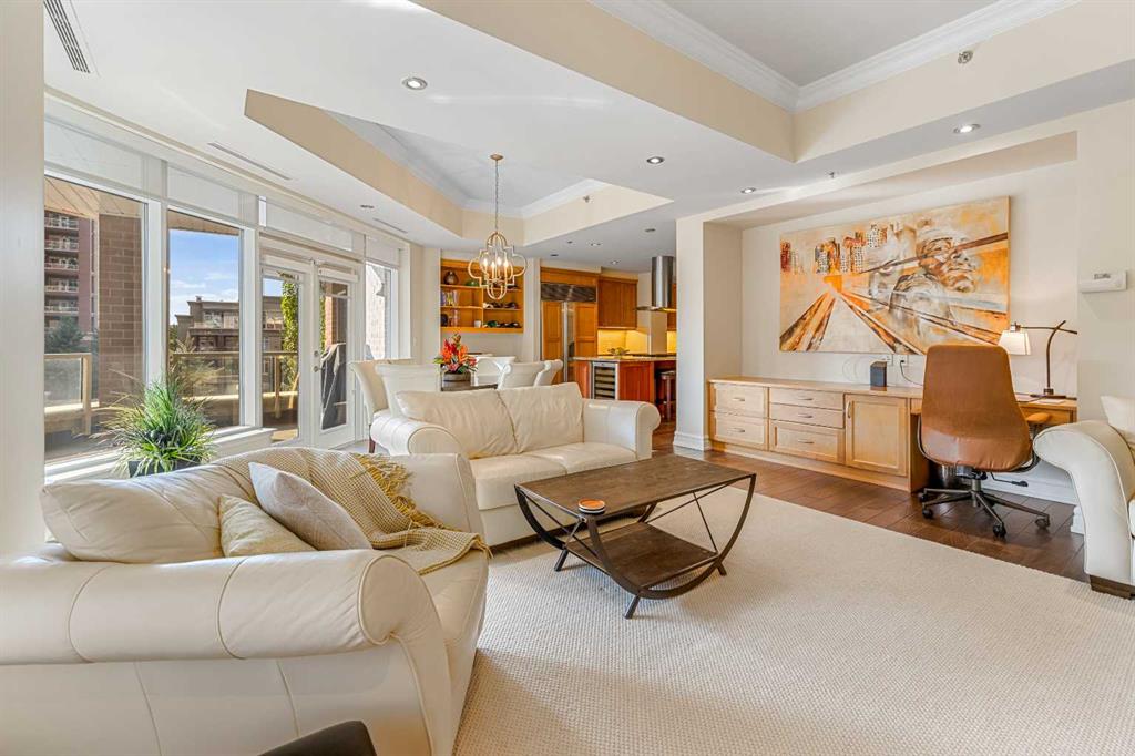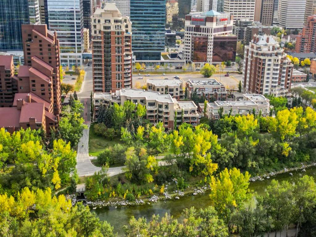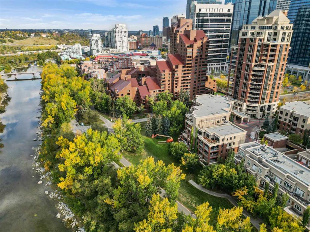 Princeton Grande in Eau Claire offers one of the premiere executive addresses in Calgary. With first class concierge service, private elevators, amazing amenities, two guest suites and a location that overlooks the river pathways and Prince’s Island Park, this is the pinnacle of luxury urban living. The impressive design and subtle luxury are evident and amplified by the recent modernization and design updates that have only been lightly enjoyed since being completed a few years back. The appointments include high quality finishings, extensive custom built-ins, and modernized paint, flooring and décor throughout. Enjoy the urban park setting from your massive covered balcony facing the river or take in the city skyline form your other covered balcony on the opposite side of the suite. You get the best of both worlds with a floorplan that is ideal for entertaining yet cozy enough for those quiet family times. There is a formal living area surrounded by windows overlooking the park and a gas fireplace for ambiance. The formal dining area will easily accommodate a table for 10-12 and also takes in the park views. The gourmet kitchen is spacious and offset from the living area for privacy when you need it. Adjacent to that is a south facing breakfast nook and outdoor terrace which captures the city views as well as a cozy family room and another gas fireplace. There is a separate laundry room, a storage area/pantry and seemingly endless closets and storage spaces. This home includes a built-in speaker system, central vacuum system, high coffered ceilings, large bright windows, a guest bedroom that includes an ensuite, two titled parking stalls and a fully enclosed titled storage locker. The amenities of the luxury residence include 24 hour security/concierge service with closed circuit monitoring, front seating area with fireplace, conference board room, temperature controlled wine storage lockers and tasting room, a social room with full kitchen/TV/terrace, two exercise rooms, a yoga room, steam room all with showers and change rooms, underground car wash bay and separate freight elevator for move in/move out. The location is extraordinary and the residence is outstanding. Come and see for yourself today!