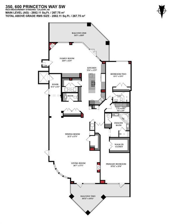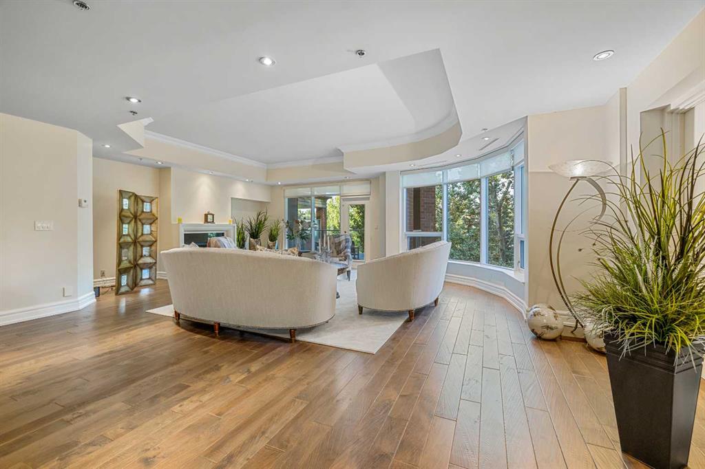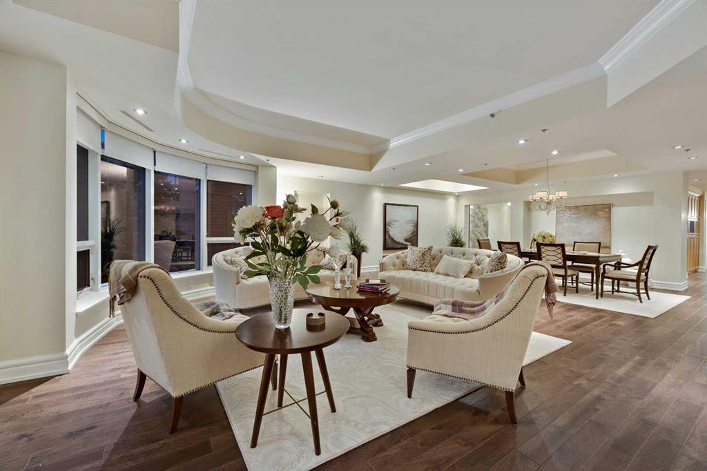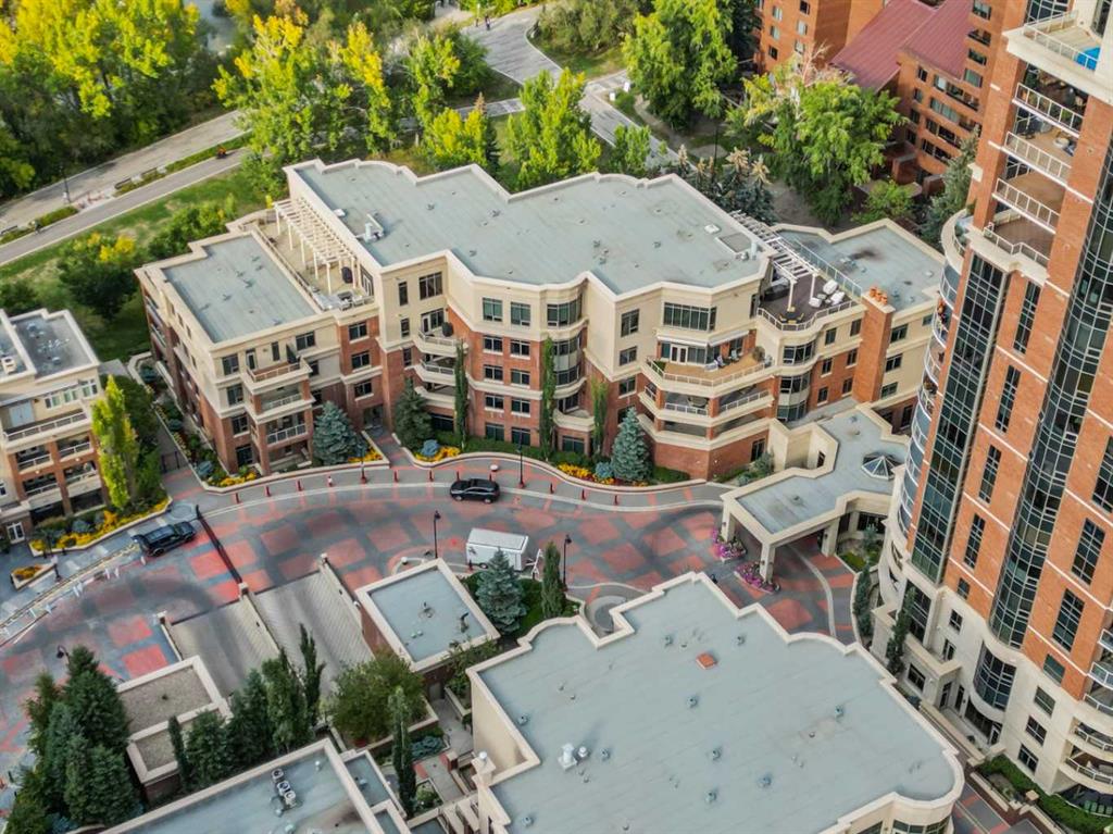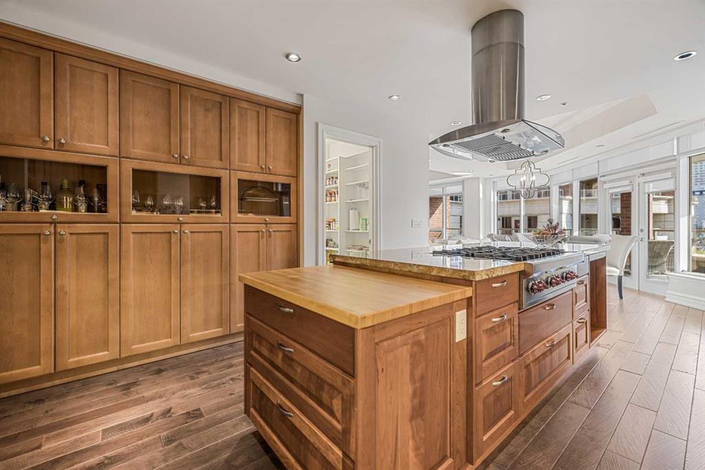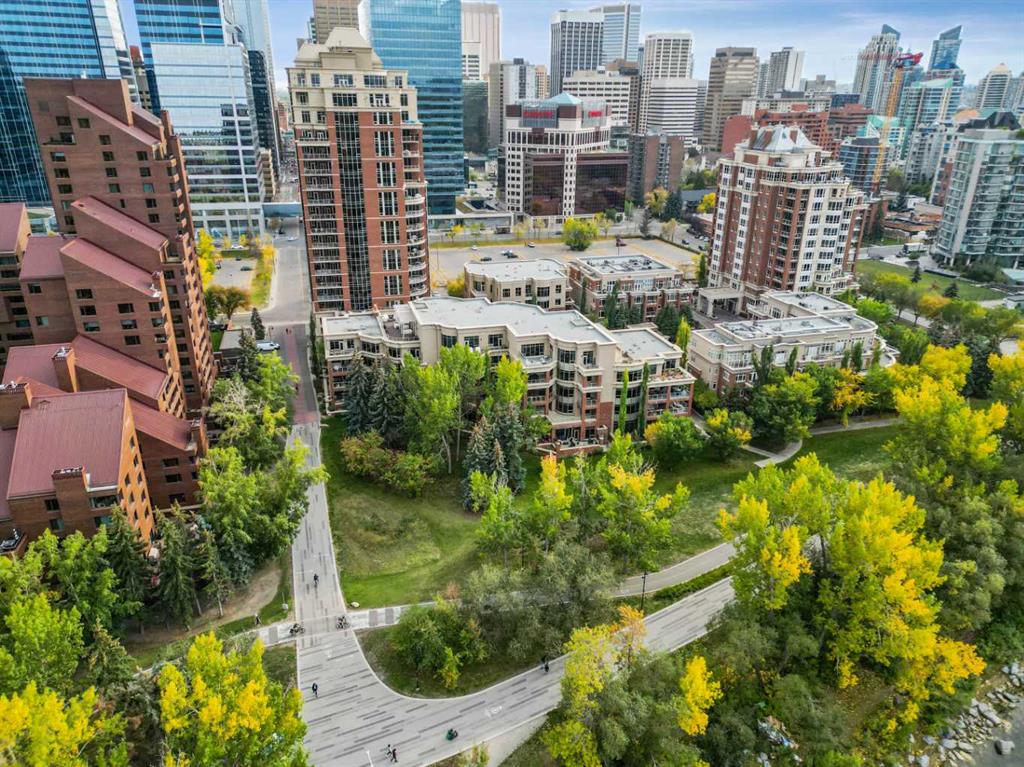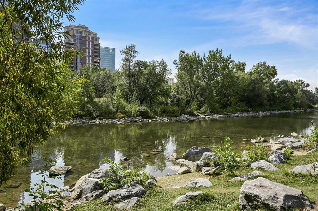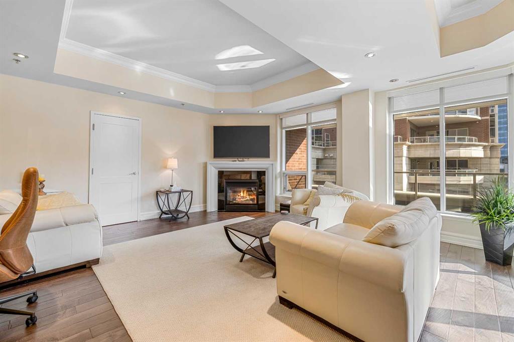 Princeton Grande in Eau Claire offers one of the premiere executive addresses in Calgary. With first class concierge service, private elevators, amazing amenities, two guest suites and a location that overlooks the river pathways and Prince’s Island Park, this is the pinnacle of luxury urban living. The impressive design and subtle luxury are evident and amplified by the recent modernization and design updates that have only been lightly enjoyed since being completed a few years back. The appointments include high quality finishings, extensive custom built-ins, and modernized paint, flooring and décor throughout. Enjoy the urban park setting from your massive covered balcony facing the river or take in the city skyline form your other covered balcony on the opposite side of the suite. You get the best of both worlds with a floorplan that is ideal for entertaining yet cozy enough for those quiet family times. There is a formal living area surrounded by windows overlooking the park and a gas fireplace for ambiance. The formal dining area will easily accommodate a table for 10-12 and also takes in the park views. The gourmet kitchen is spacious and offset from the living area for privacy when you need it. Adjacent to that is a south facing breakfast nook and outdoor terrace which captures the city views as well as a cozy family room and another gas fireplace. There is a separate laundry room, a storage area/pantry and seemingly endless closets and storage spaces. This home includes a built-in speaker system, central vacuum system, high coffered ceilings, large bright windows, a guest bedroom that includes an ensuite, two titled parking stalls and a fully enclosed titled storage locker. The amenities of the luxury residence include 24 hour security/concierge service with closed circuit monitoring, front seating area with fireplace, conference board room, temperature controlled wine storage lockers and tasting room, a social room with full kitchen/TV/terrace, two exercise rooms, a yoga room, steam room all with showers and change rooms, underground car wash bay and separate freight elevator for move in/move out. The location is extraordinary and the residence is outstanding. Come and see for yourself today!