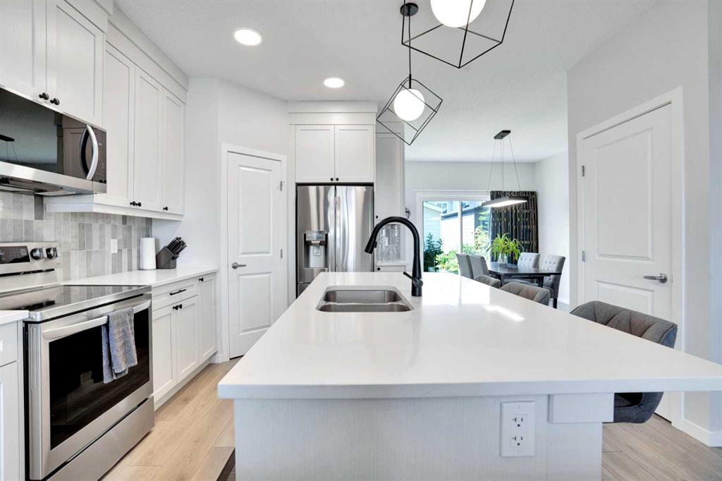 Open House Saturday October 25th from 1:00-3:00pm...Shop and compare. There is outstanding value here when compared to the brand-new offerings in any of the newer communities of South Calgary. Located in the south west Calgary community of Alpine Park, this traditional, front porch style laned home is ready for you today and comes complete with a larger than average 22’ x 20’5” double detached garage finished to drywall, all blinds, a fully fenced and landscaped yard, central air conditioning, a Kinetico water softener and an already present separate side door entrance for future basement finishing possibilities. Make sure you add all of that up when comparing prices. Built in 2022 but lived in ever so gently, this striking modern finished home still feels nearly brand new. A sparkling white kitchen with full height cabinetry, quartz counters and wide plank flooring ensure you are not missing anything here. The outside is finished with solid composite siding for durability and an upgraded finish level. The basement has two egress windows, rough-in plumbing and a nicely tucked away utility bundle allowing for options when finishing. Alpine Park is easily accessible by the west leg of Stoney Trail with Costco and all the retail development in Buffalo Run only a few minutes away. This one is a great package that will be a win for someone. Why not you? Nothing to do here but move in and enjoy. Come and see for yourself today!
